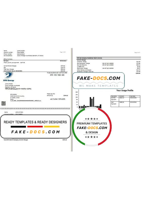 USA DTE Energy utility bill Word and Pdf Template use for :