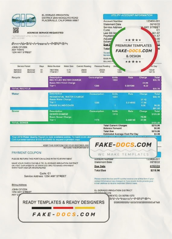 Grab now fully editable USA EID utility bill Template from our website fake docs and put your own info to create a fake copy of Fake USA EID Utility Bill for proof of address and ready your own novelty documents. It’ll be so beneficial if your utility bill is expired, stolen or not available. We also have passport psd template, ID Card psd template, Bank Statement psd template, drivers license psd template & Utility bill psd template