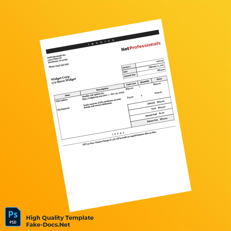 USA NetProfessionals Inc Invoice Template in Word and PDF Formats