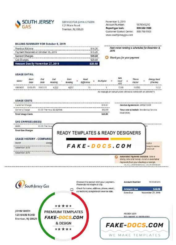 Grab now fully editable USA New Jersey gas utility bill Template from our website fake docs and put your own info to create a fake copy of Fake USA New Jersey gas Utility Bill for proof of address and ready your own novelty documents. It’ll be so beneficial if your utility bill is expired, stolen or not available. We also have passport psd template, ID Card psd template, Bank Statement psd template, drivers license psd template & Utility bill psd template