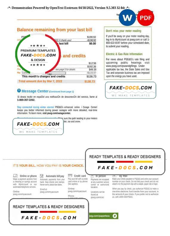 USA New York PSEG utility bill Word template . Fully editable Word template. High quality template. Easy to customize, Layer based, fonts included. you can edit this template and put any name, address, license number, Id number, birth date, height, weight, expire date etc. This Word template is a easy to Editing.To modify this Word template file you will need a Word editing software such as Microsoft Word. Never used low quality template. Your account may be suspended.