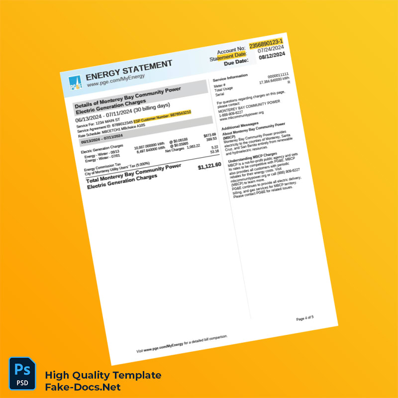 In today’s fast-paced world, proof of address is often required for various tasks, from opening bank accounts to applying for loans. The USA Pacific Gas And Electric Company Editable Utility Bill Template is here to alleviate these urgent needs with a professional, customizable solution.