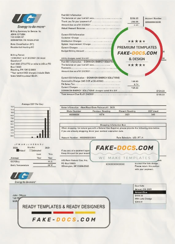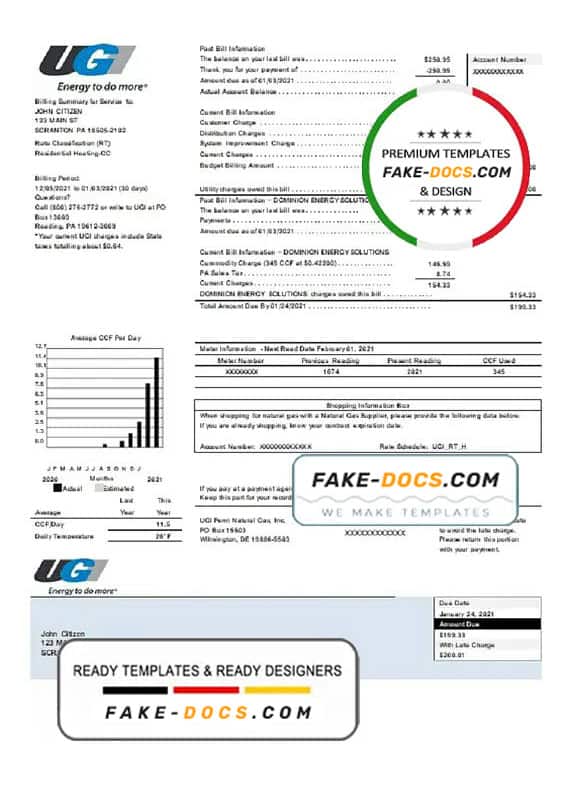 USA Pennsylvania UGI Utilities utility bill Word and Pdf Template use for :