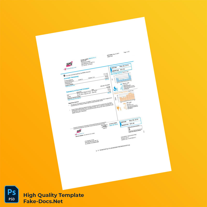 USA San Diego Gas Electric Editable Utility Bill Template in Word and PDF formats