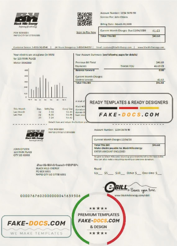 Grab now fully editable USA South Dakota Black Hills Energy utility bill Template from our website fake docs and put your own info to create a fake copy of Fake USA South Dakota Black Hills Energy Utility Bill for proof of address and ready your own novelty documents. It’ll be so beneficial if your utility bill is expired, stolen or not available. We also have passport psd template, ID Card psd template, Bank Statement psd template, drivers license psd template & Utility bill psd template