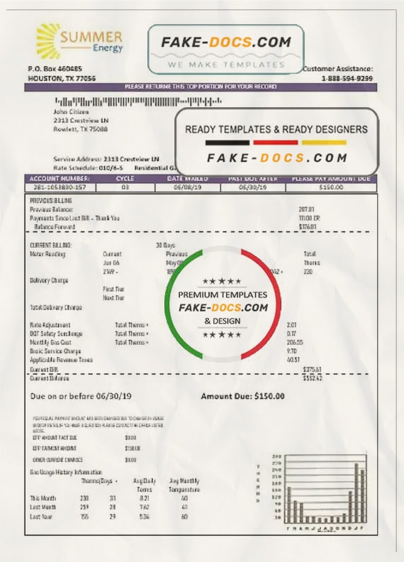 Grab now fully editable USA Texas Summer Energy easy fillable utility bill Template from our website fake docs and put your own info to create a fake copy of Fake USA Texas Summer Energy easy fillable Utility Bill for proof of address and ready your own novelty documents. It’ll be so beneficial if your utility bill is expired, stolen or not available. We also have passport psd template, ID Card psd template, Bank Statement psd template, drivers license psd template & Utility bill psd template