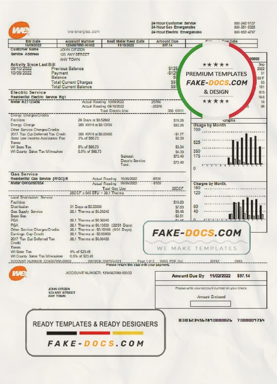 Grab now fully editable USA We utility bill Template from our website fake docs and put your own info to create a fake copy of Fake USA We Utility Bill for proof of address and ready your own novelty documents. It’ll be so beneficial if your utility bill is expired, stolen or not available. We also have passport psd template, ID Card psd template, Bank Statement psd template, drivers license psd template & Utility bill psd template
