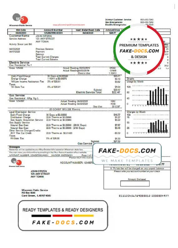 Grab now fully editable USA WPS utility bill Template from our website fake docs and put your own info to create a fake copy of Fake USA WPS Utility Bill for proof of address and ready your own novelty documents. It’ll be so beneficial if your utility bill is expired, stolen or not available. We also have passport psd template, ID Card psd template, Bank Statement psd template, drivers license psd template & Utility bill psd template