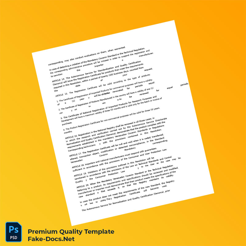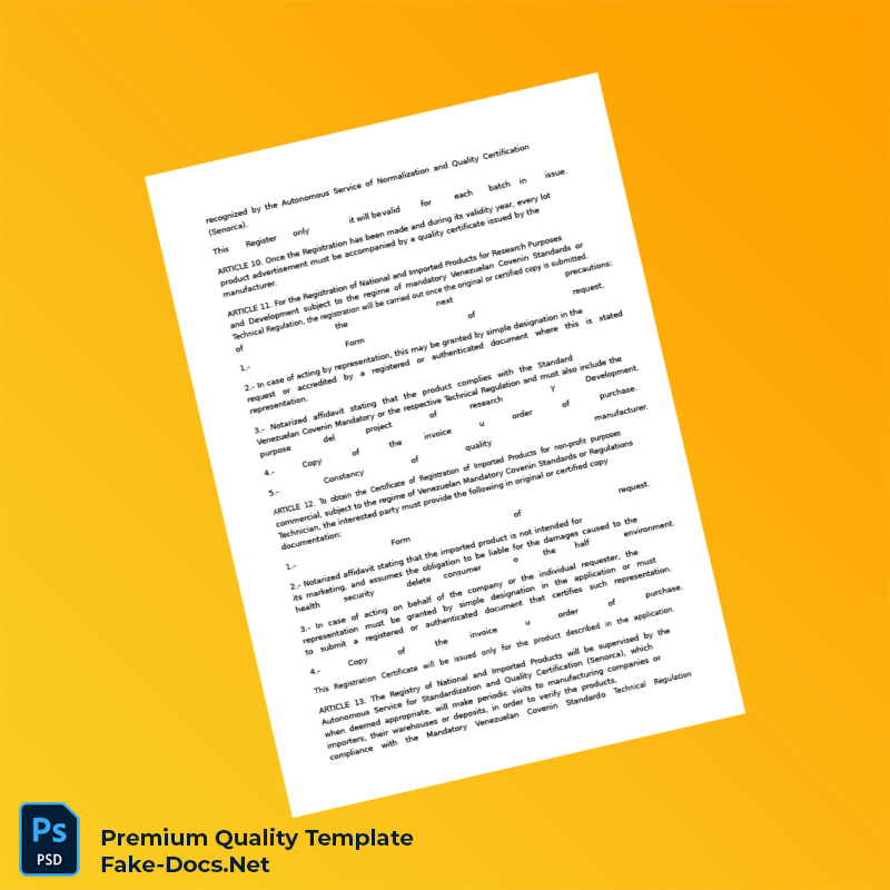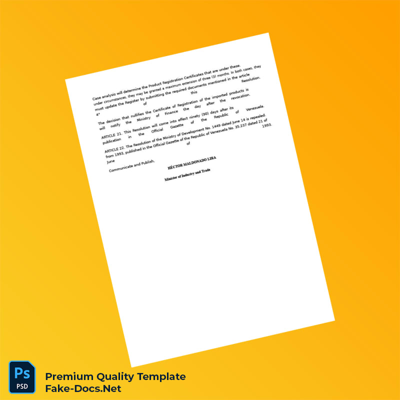 Streamline Your Business Registration with the Venezuela Ministry of Commerce National Products Registration Certificate Template (Word & PDF)