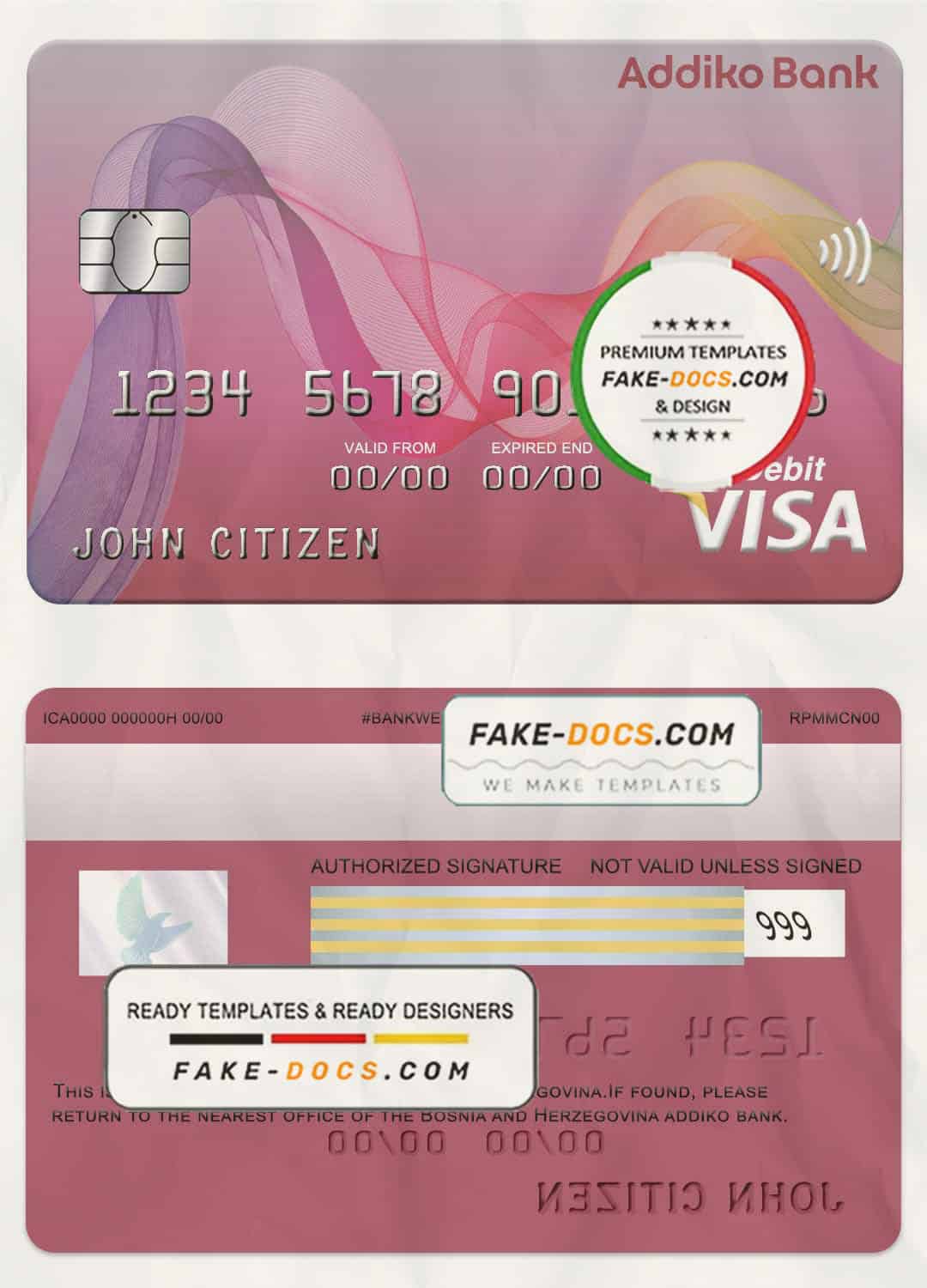 Bosnia and Herzegovina Addiko bank visa card template in PSD format, fully editable