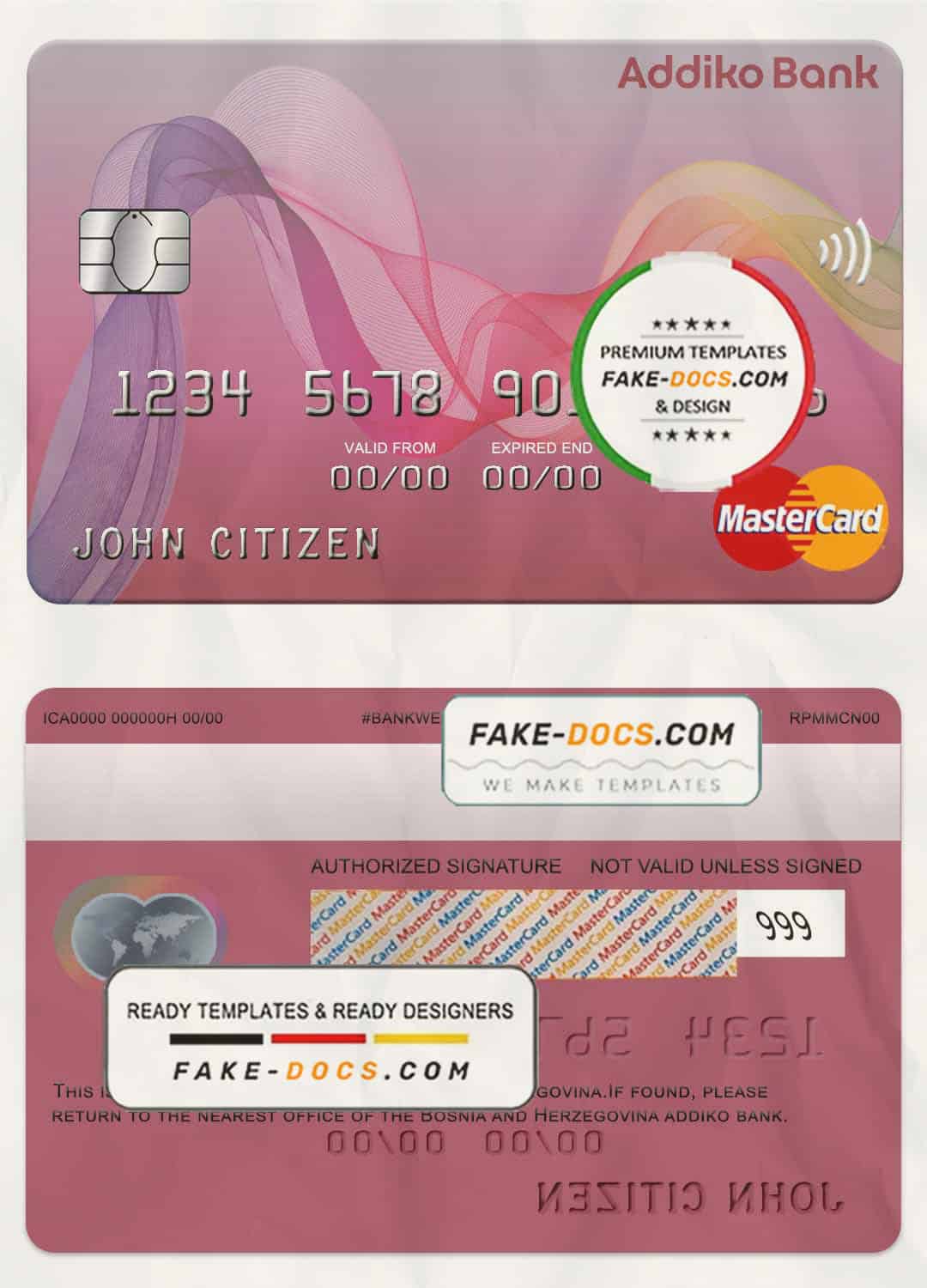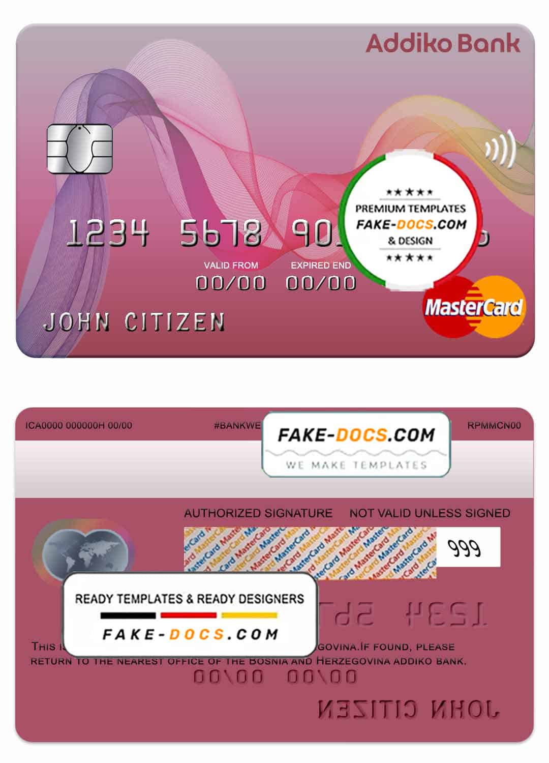 Bosnia and Herzegovina Addiko bank mastercard template in PSD format, fully editable