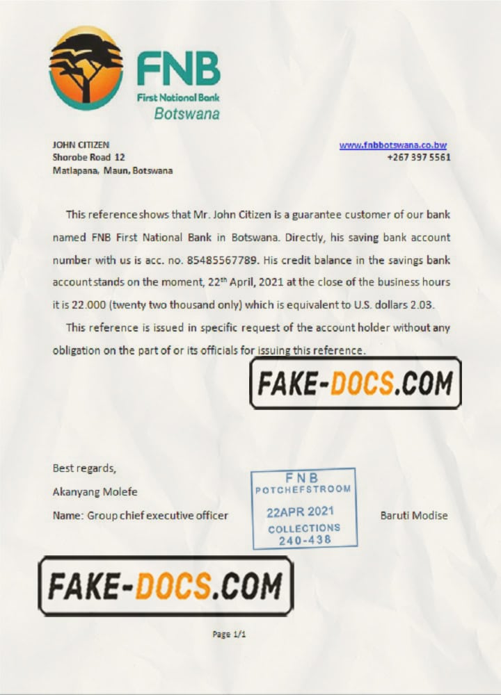 Bank Statement psd templateBotswana First National Bank statement template in Word and PDF format, good for address prove- High Quality template