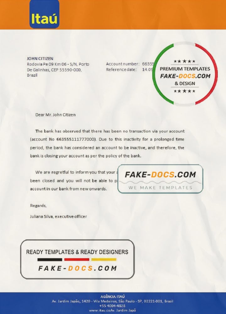 Bank Statement psd templateBrazil Itau bank statement template in Word and PDF format, fully editable- High Quality template