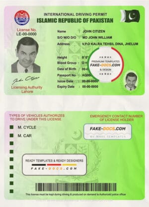 Pakistan international Driving Permit Template
