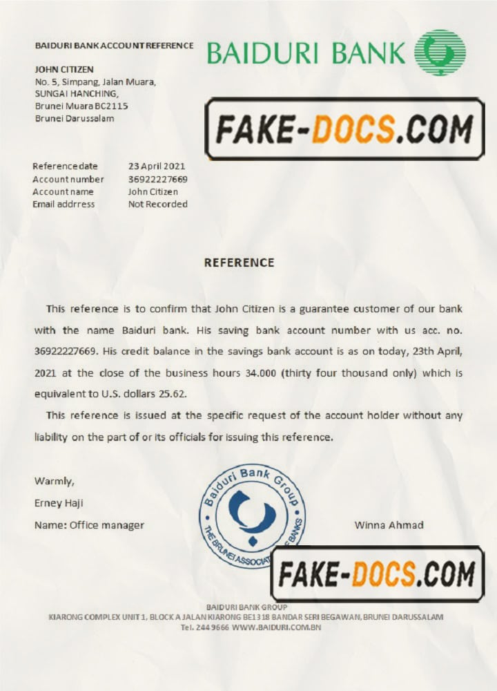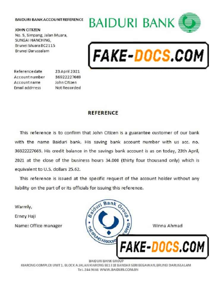 Bank Statement psd templateBrunei Baiduri Bank proof of addres statement template in Word and PDF format- High Quality template