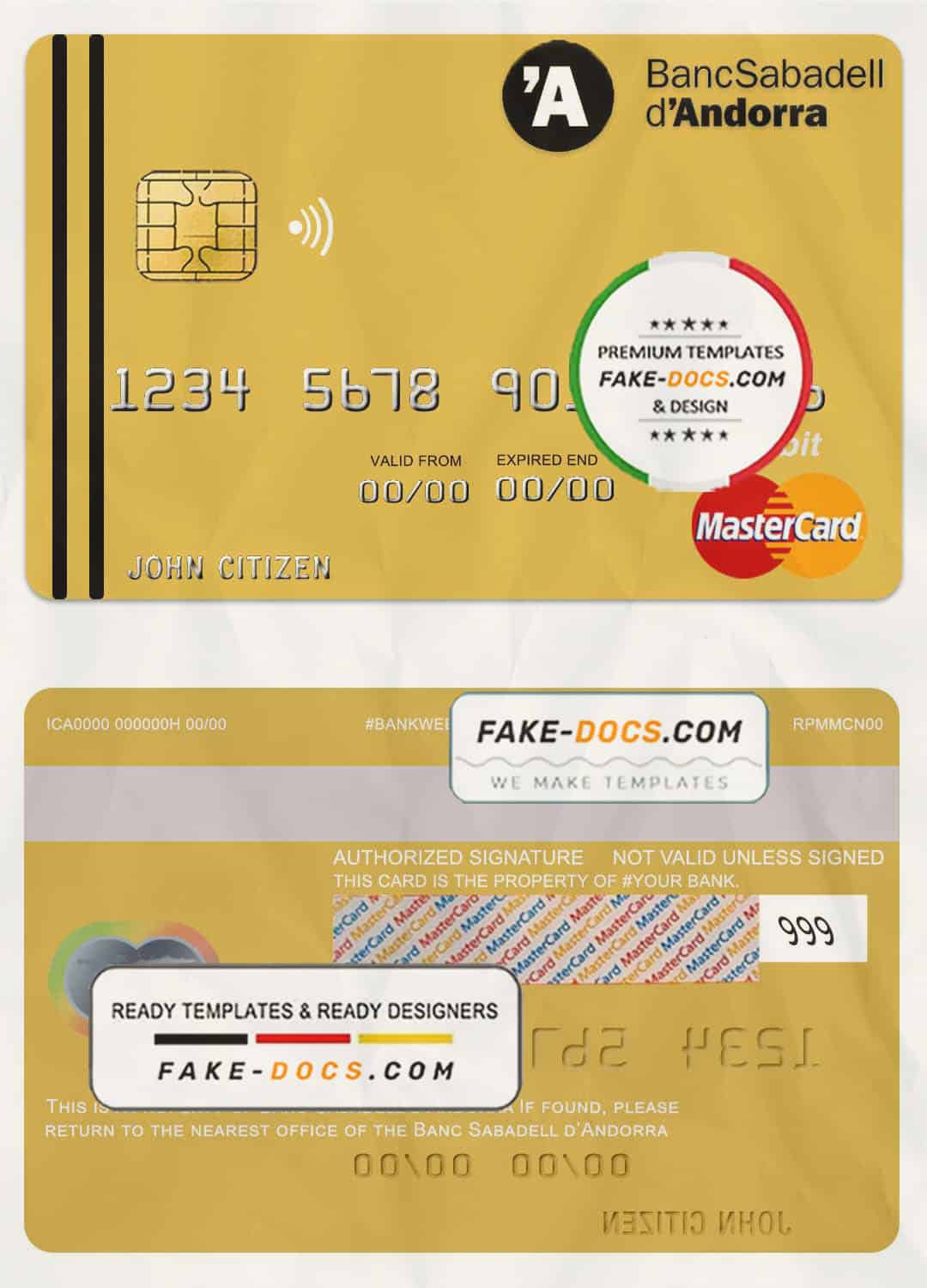 Andorra Bank Sabadell mastercard template in PSD format, fully editable