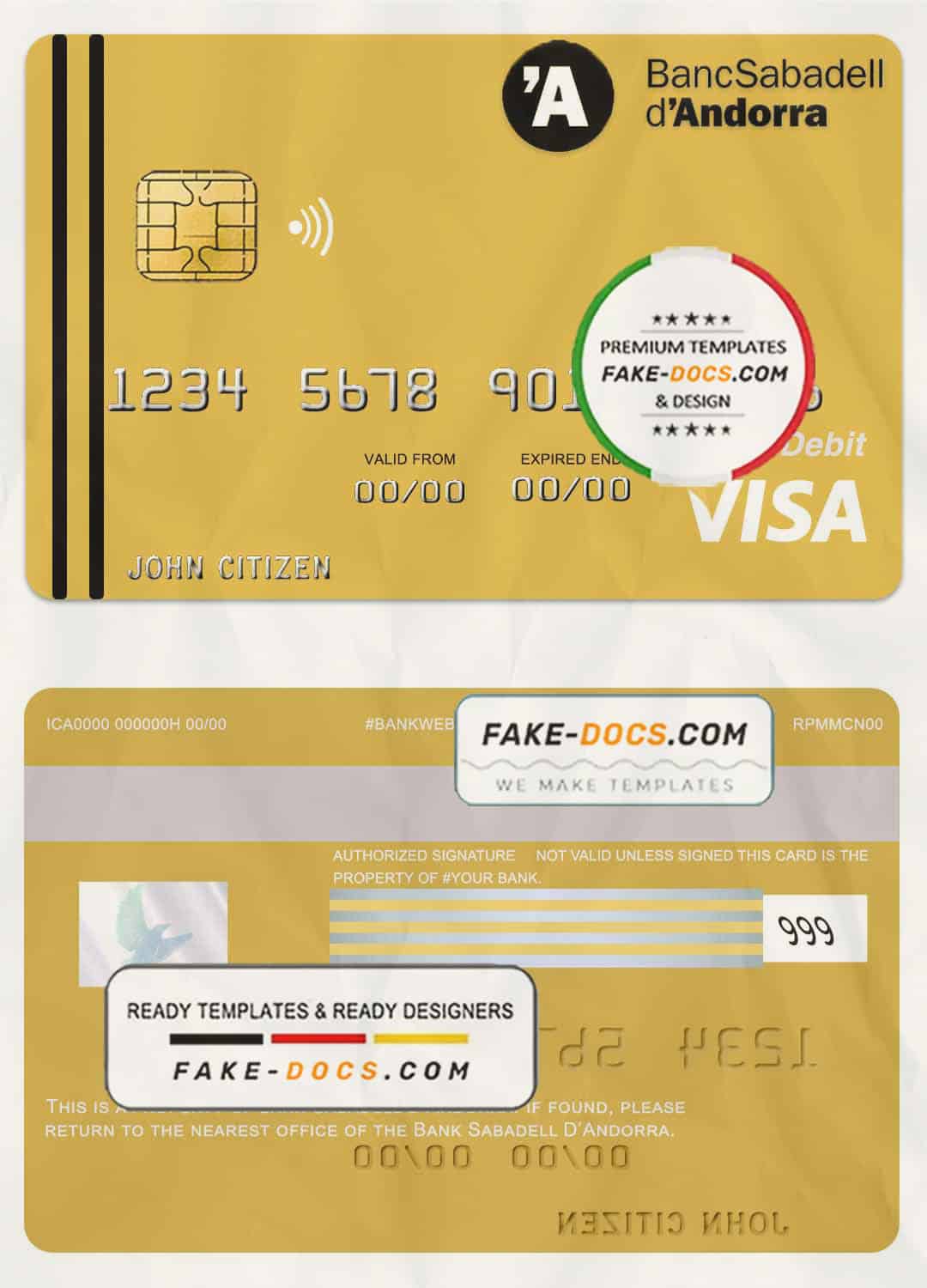 Andorra Bank Sabadell visa card debit card template in PSD format, fully editable