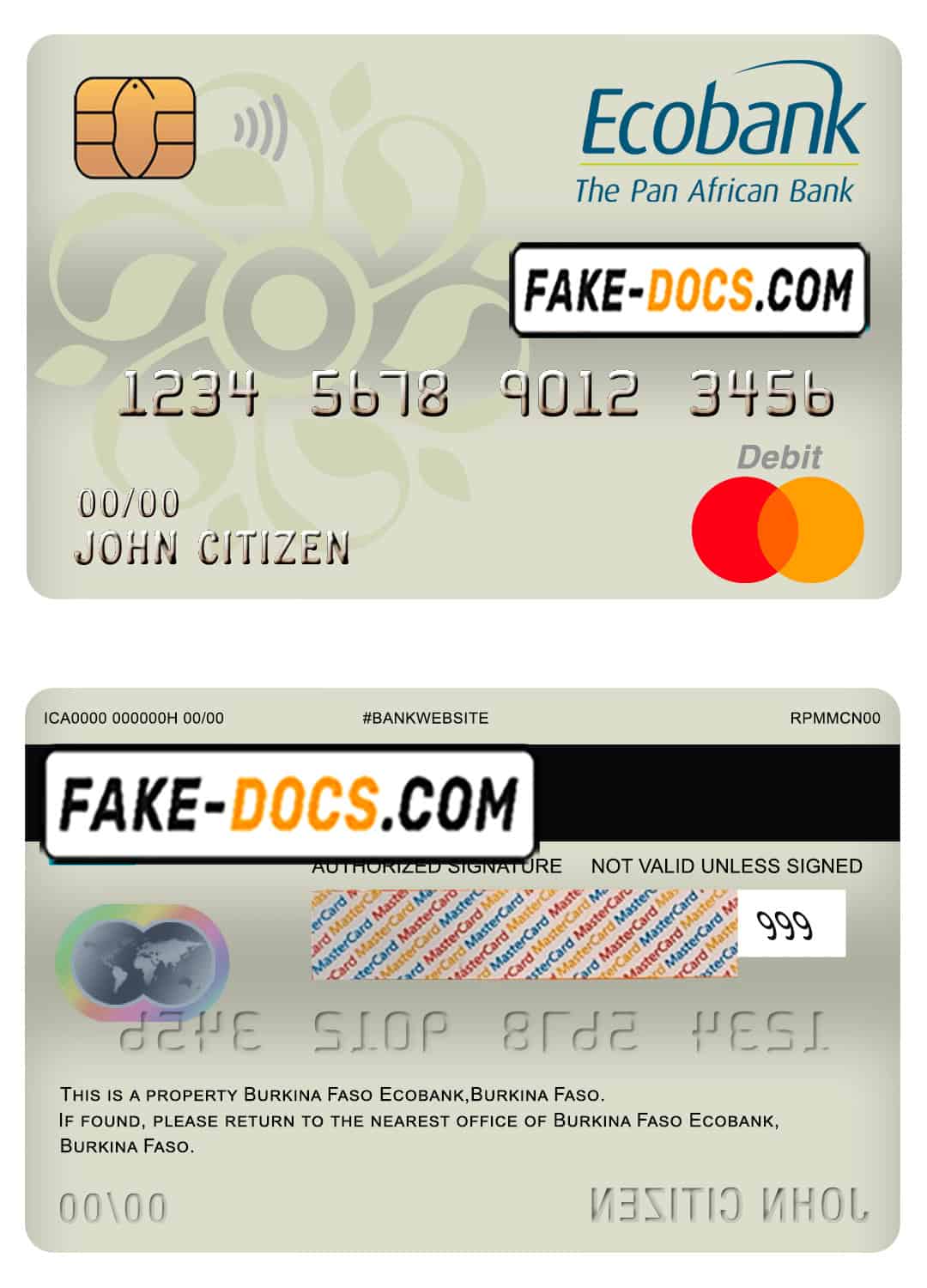 Burkina Faso Ecobank bank mastercard debit card template in PSD format, fully editable