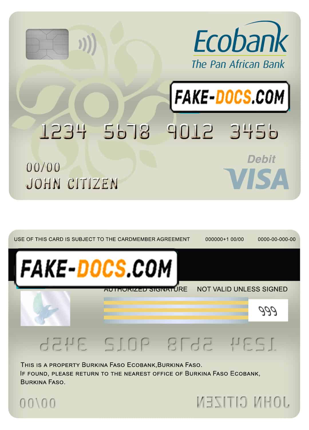 Burkina Faso Ecobank bank visa card debit card template in PSD format, fully editable