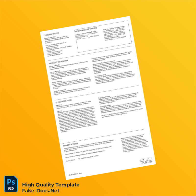Canada Alectra Utilities Editable Electricity Bill Template in Word and PDF formats 2 page