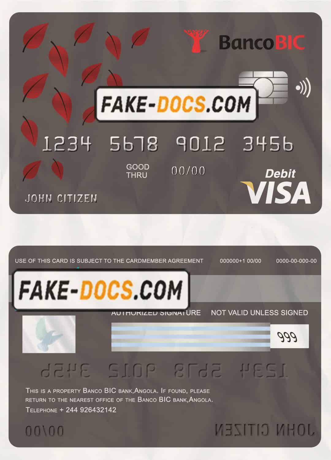 Angola Banco BIC bank visa card debit card template in PSD format, fully editable
