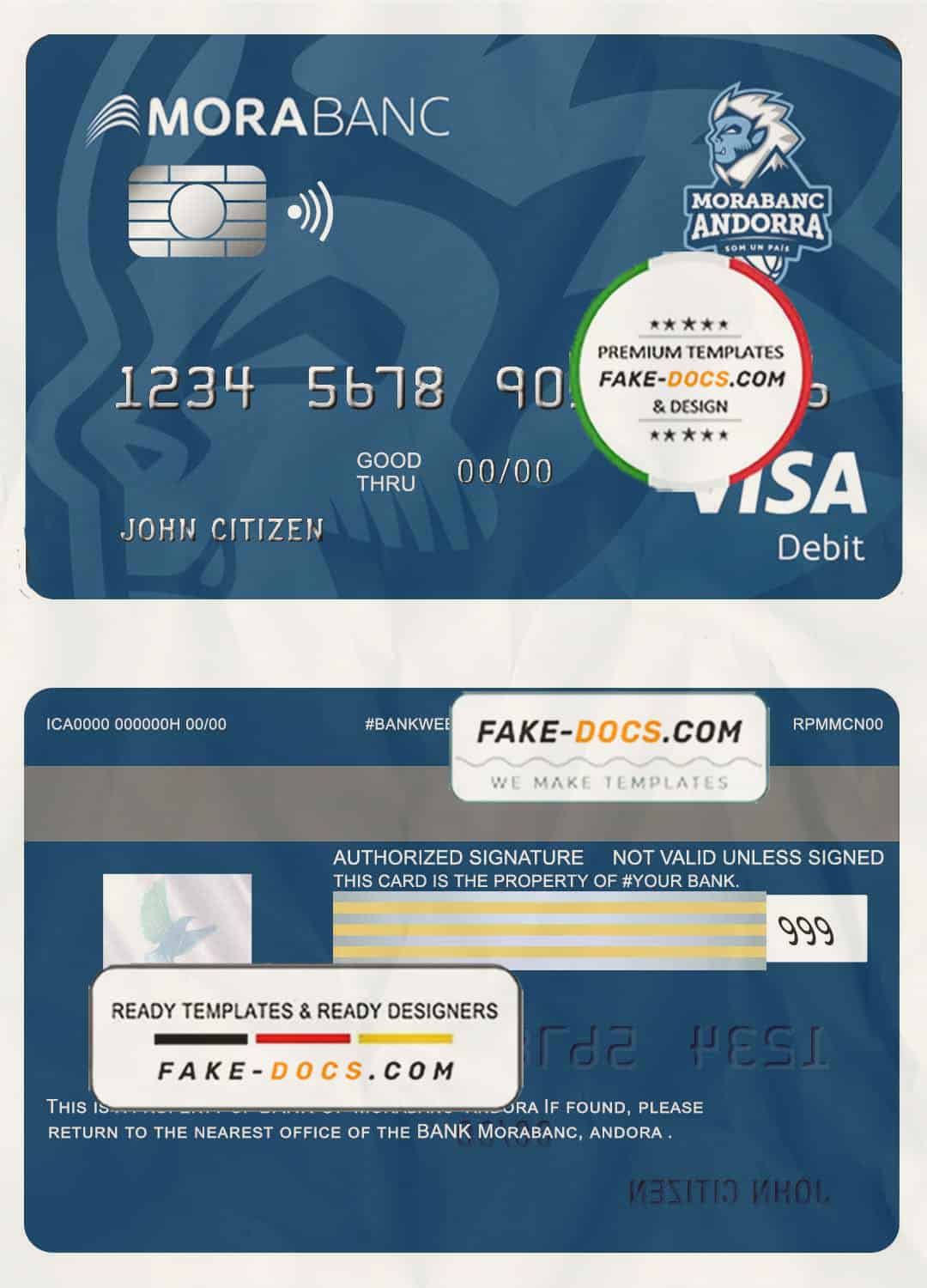Andorra Morabank visa debit card template in PSD format, fully editable