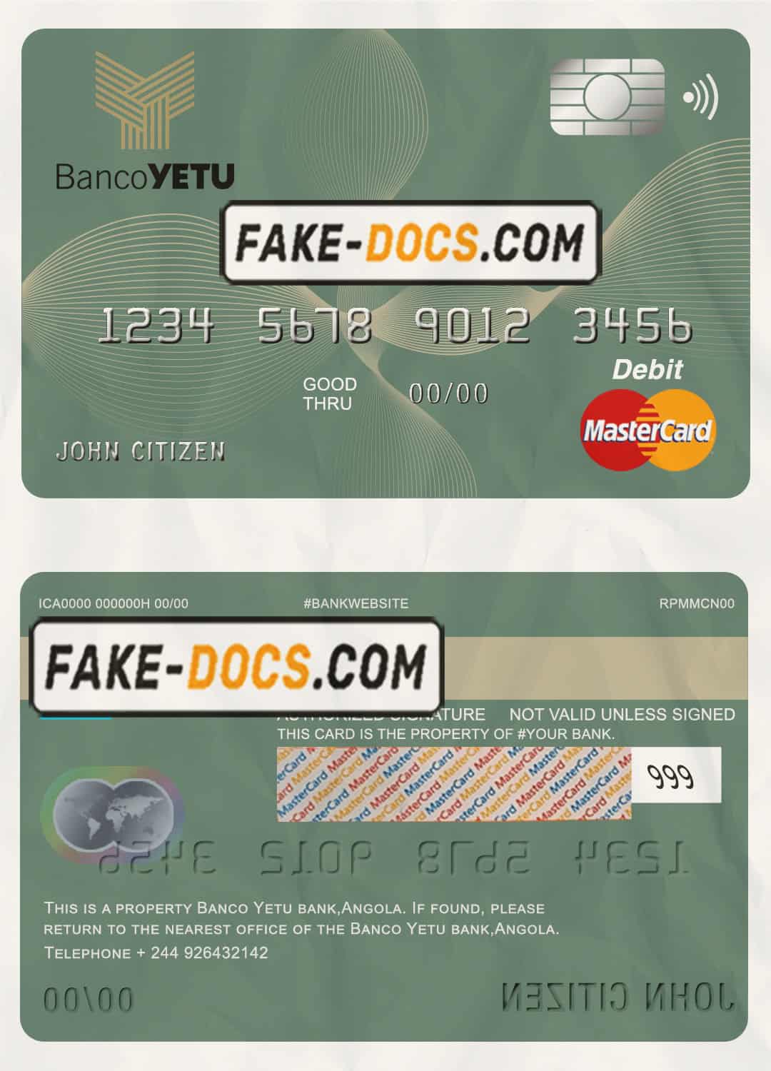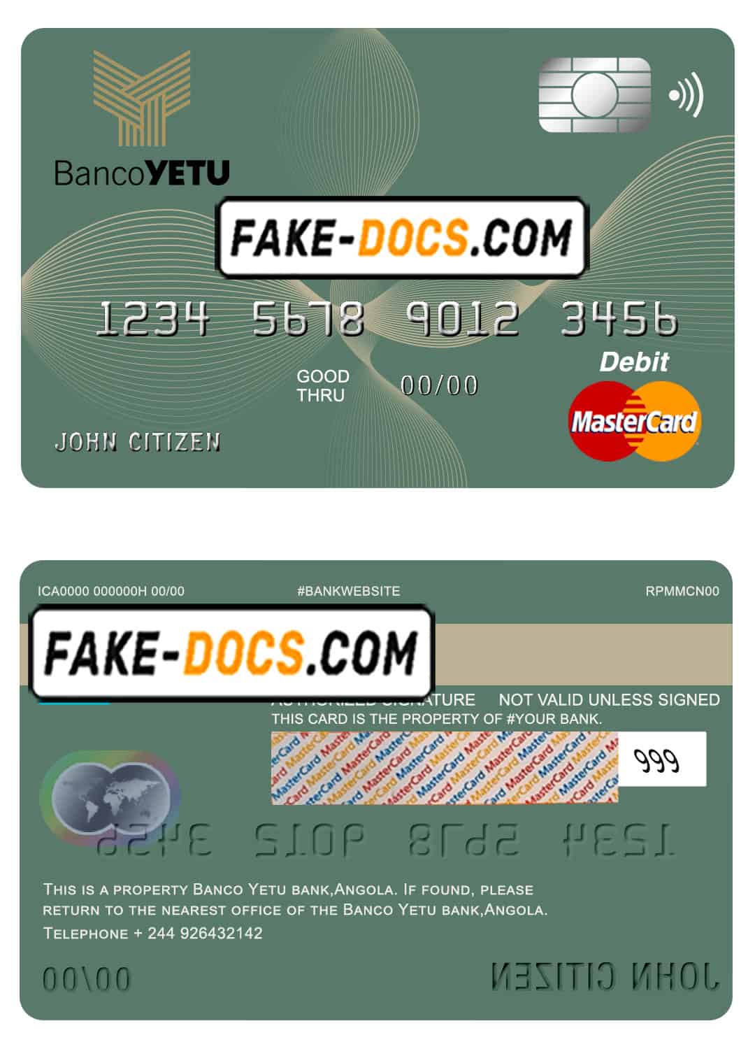 Angola Banco Yetu bank mastercard debit card template in PSD format, fully editable