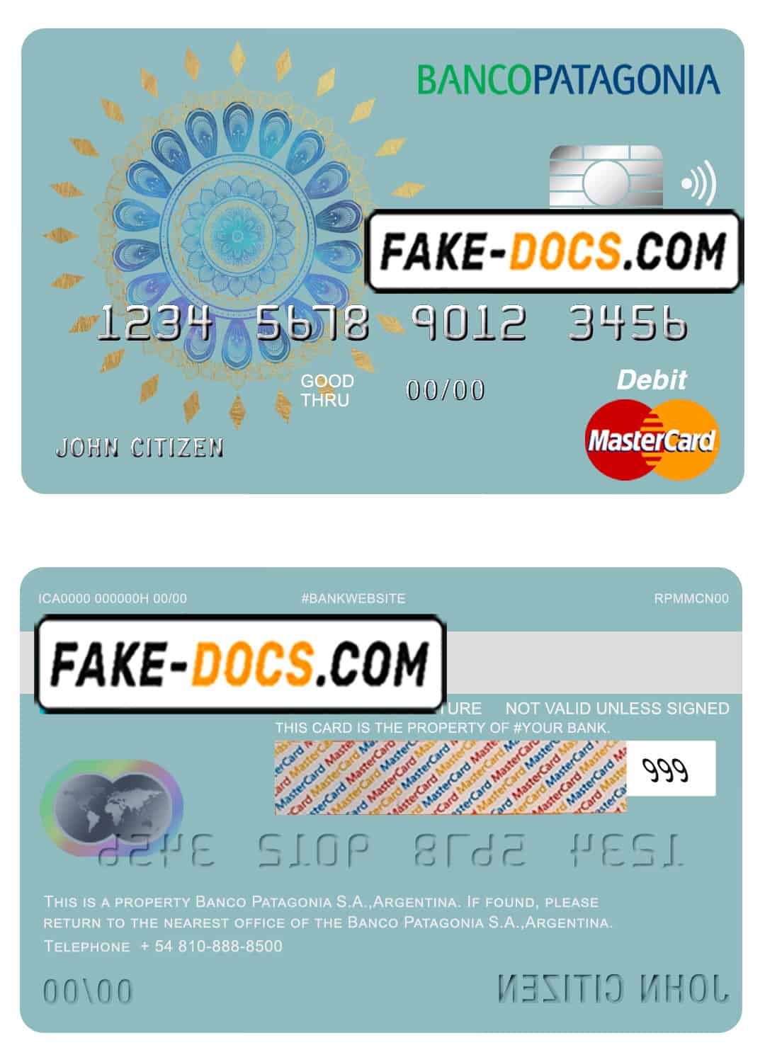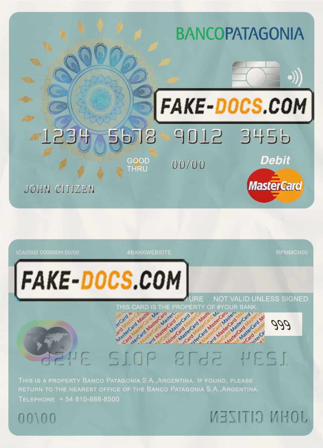 Argentina Banco Patagonia bank mastercard debit card template in PSD format, fully editable