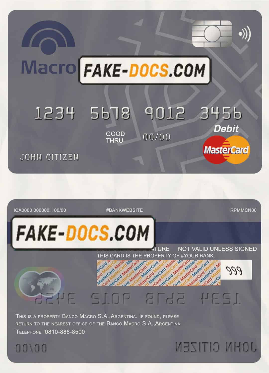 Argentina Banco Macro S.A. bank mastercard debit card template in PSD format, fully editable