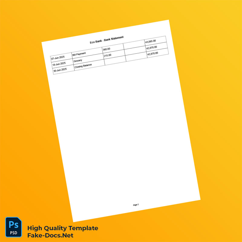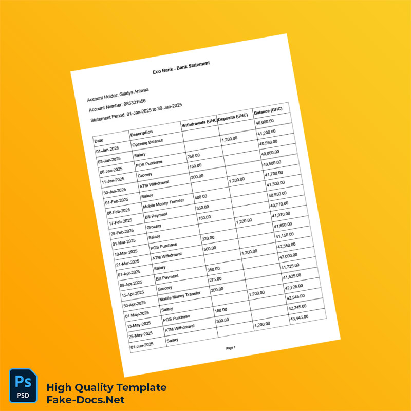 Ghana Eco Bank Bank Statement Template in Word and PDF formats 2 page