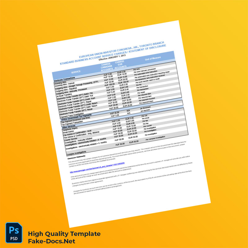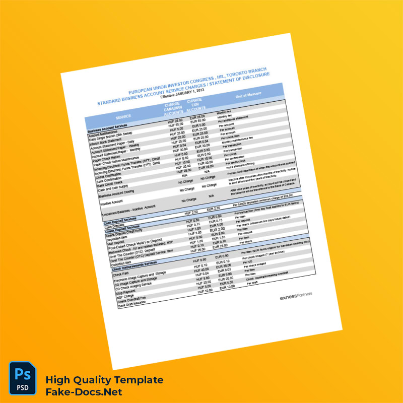 Hungary Standard Business Account Service Charges Statement of Disclosure Template in Word and PDF formats 2 page