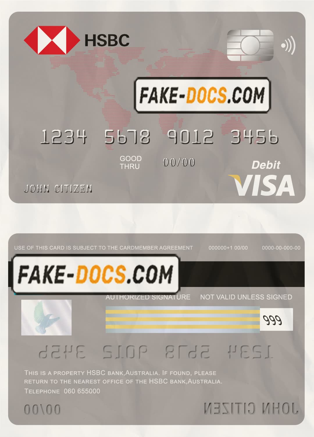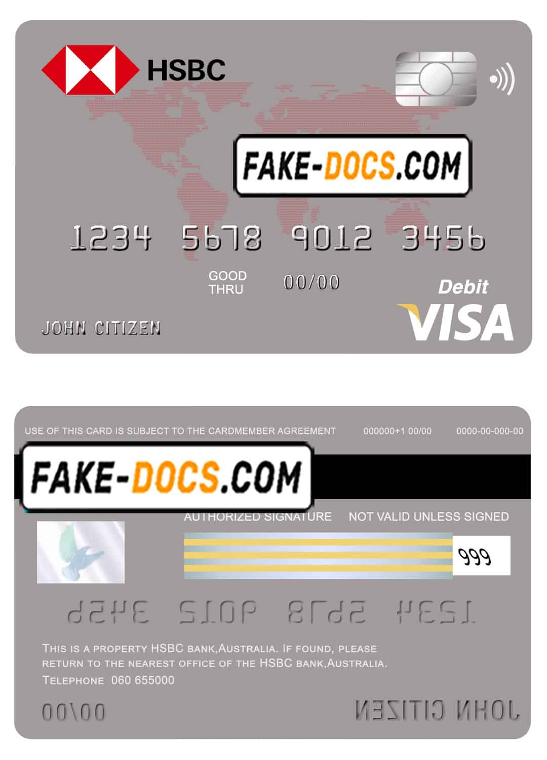 Australia HSBC bank visa card debit card template in PSD format, fully editable