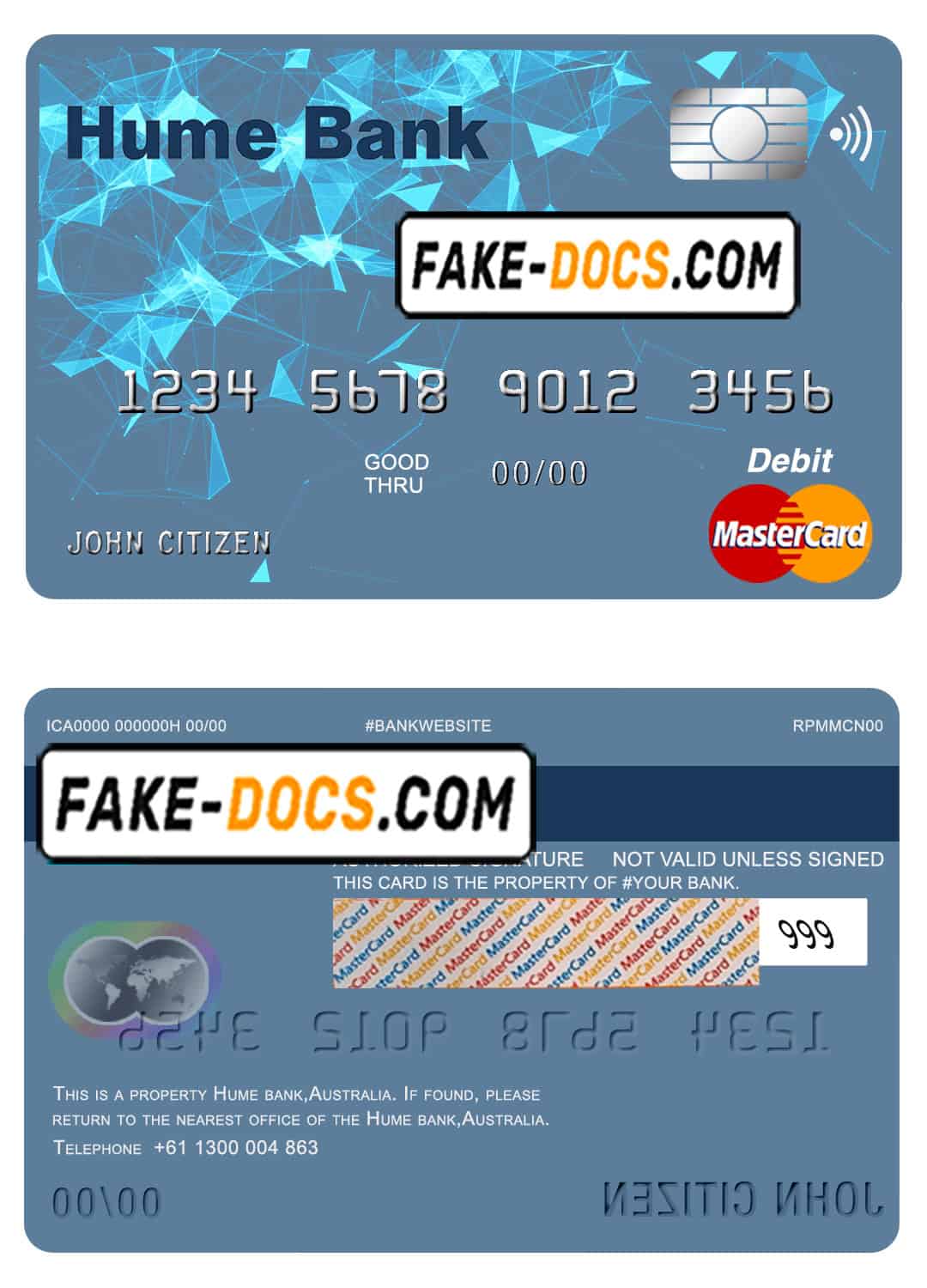Australia Humebank bank mastercard debit card template in PSD format, fully editable