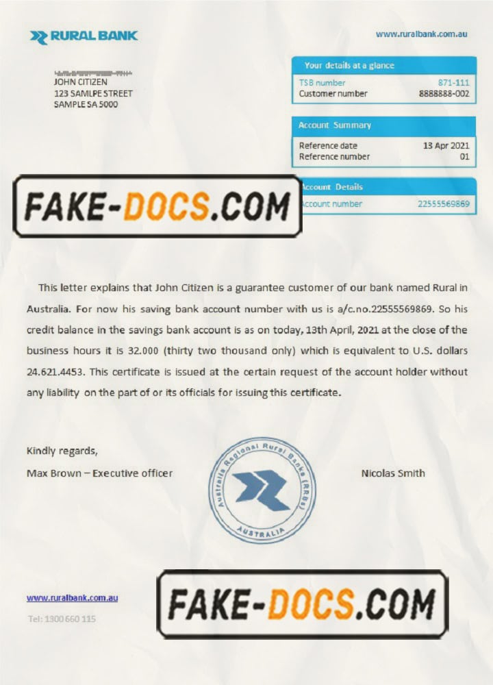Australia Rural Bank statement easy to fill template in Excel and PDF format