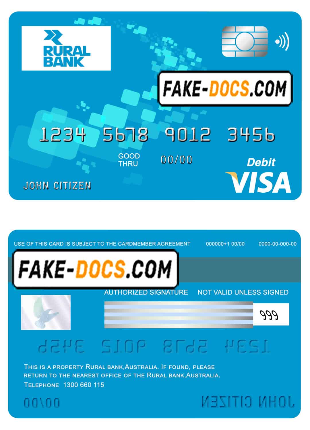 Australia Rural Bank visa card debit card template in PSD format, fully editable