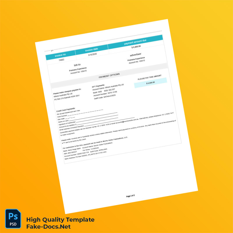 Australia Where Australia Pty Ltd Tax Invoice Template in Word and PDF formats 2 page