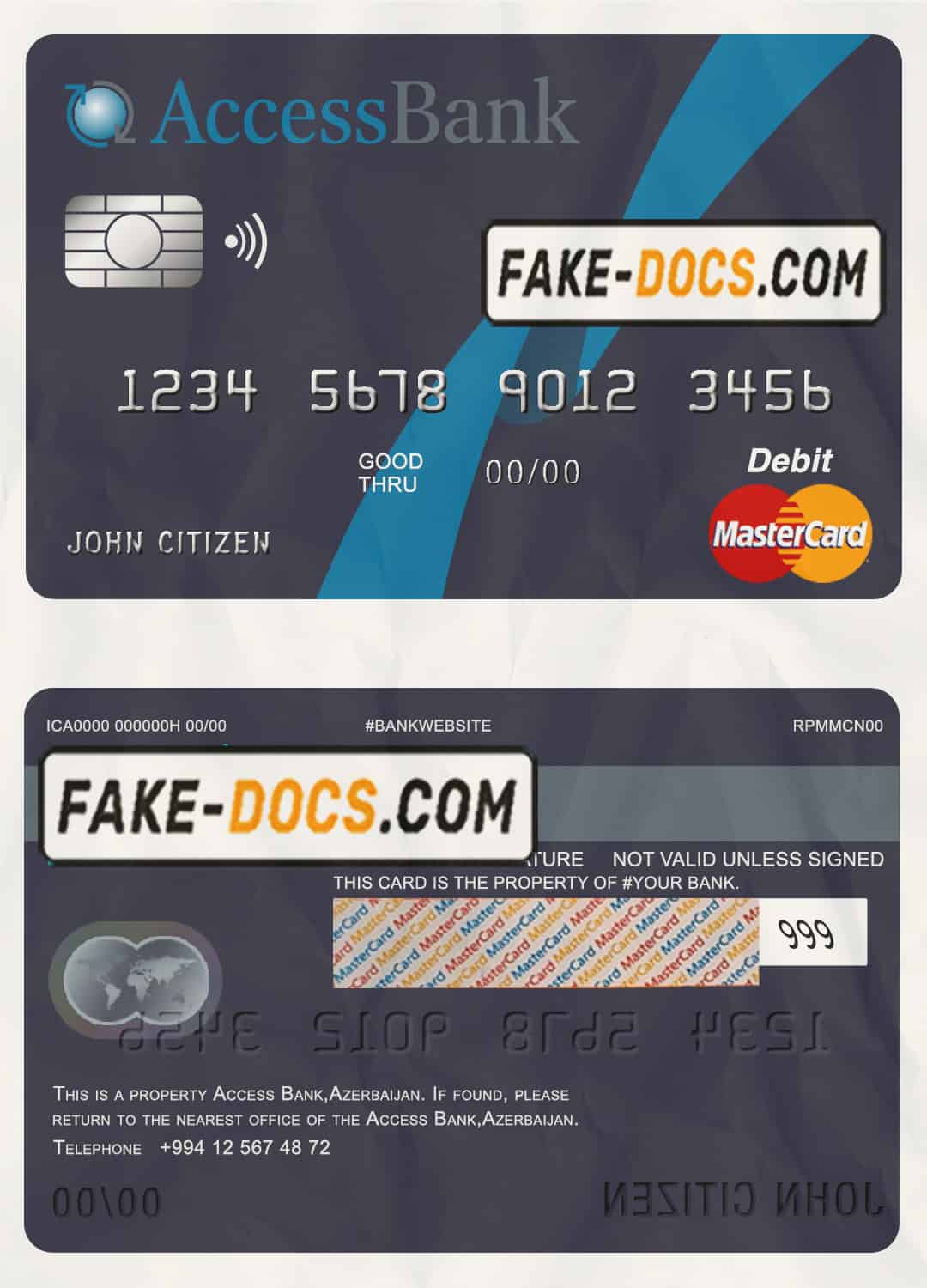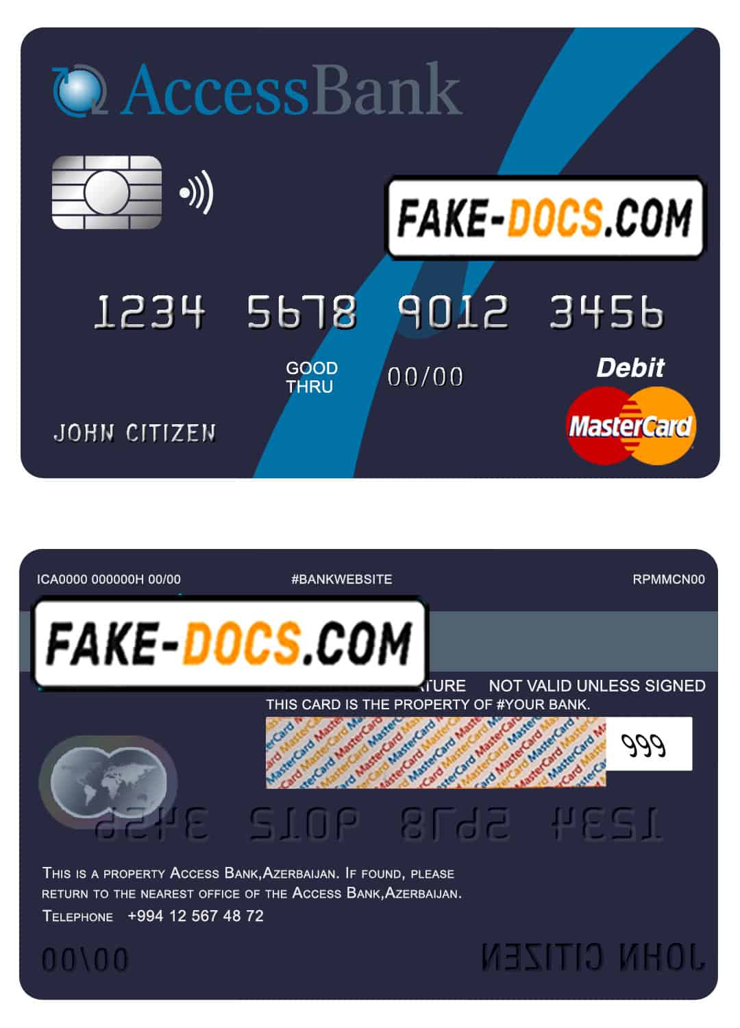 Azerbaijan Access Bank mastercard debit card template in PSD format, fully editable