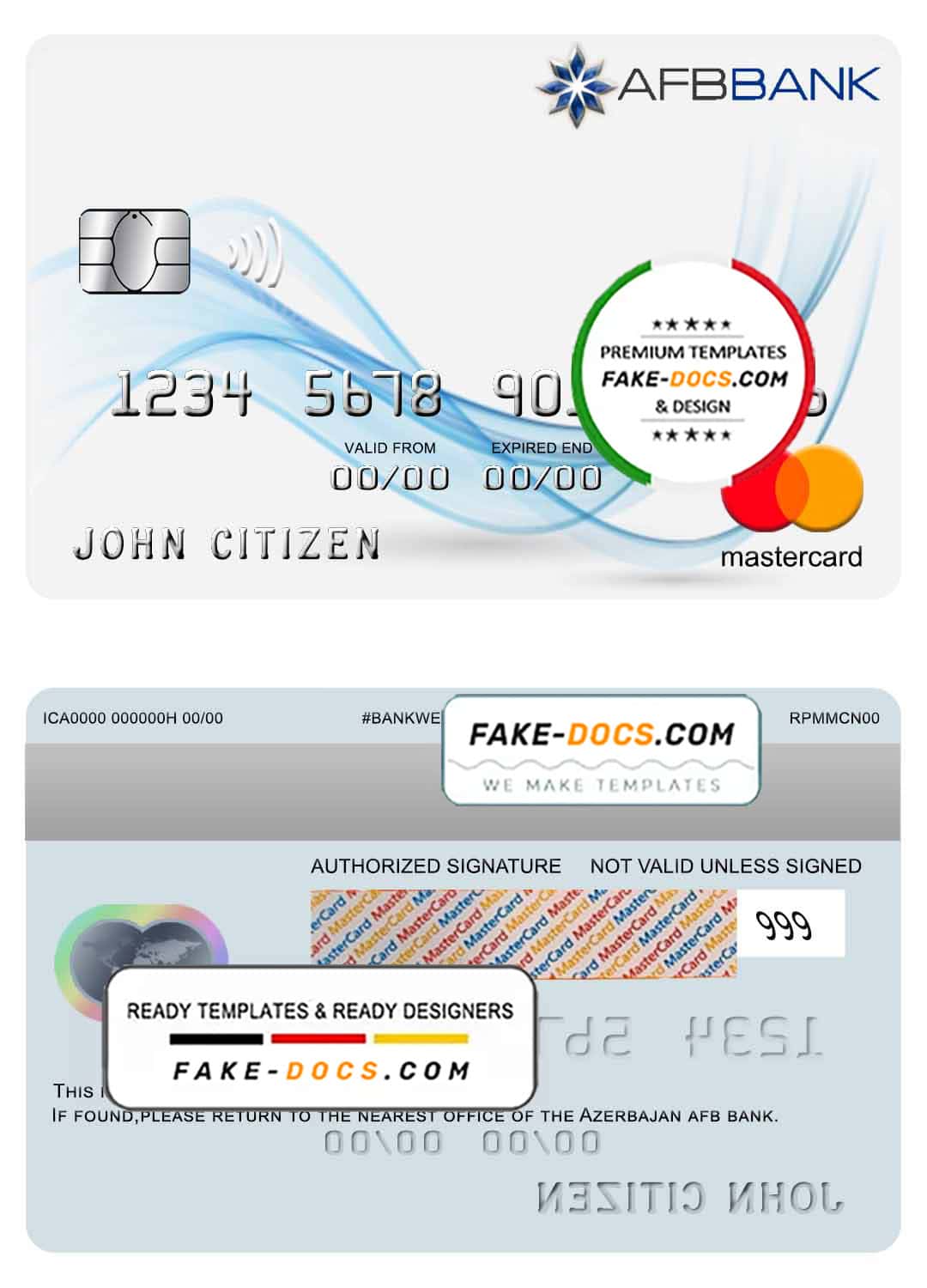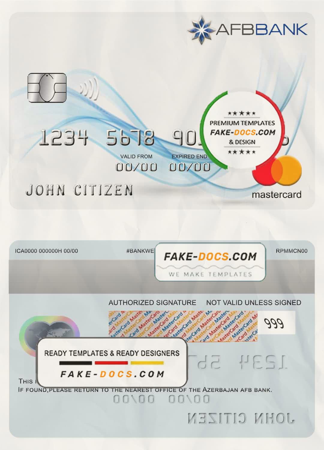 Azerbaijan AFB bank mastercard template in PSD format, fully editable