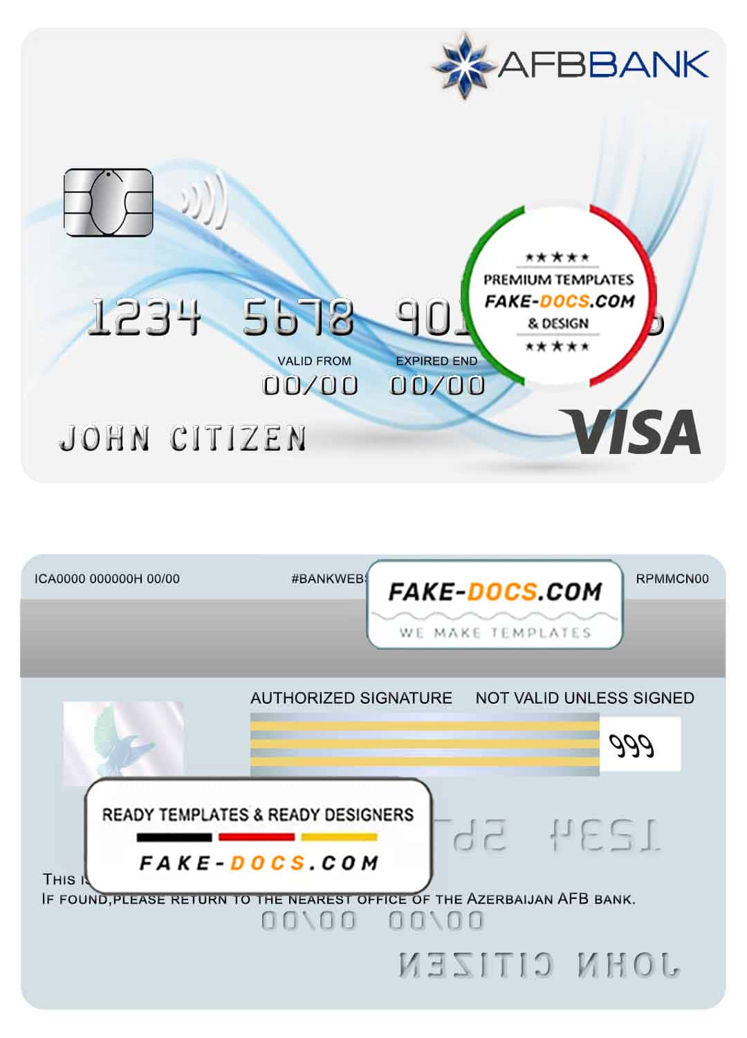 Azerbaijan AFB bank visa card template in PSD format, fully editable