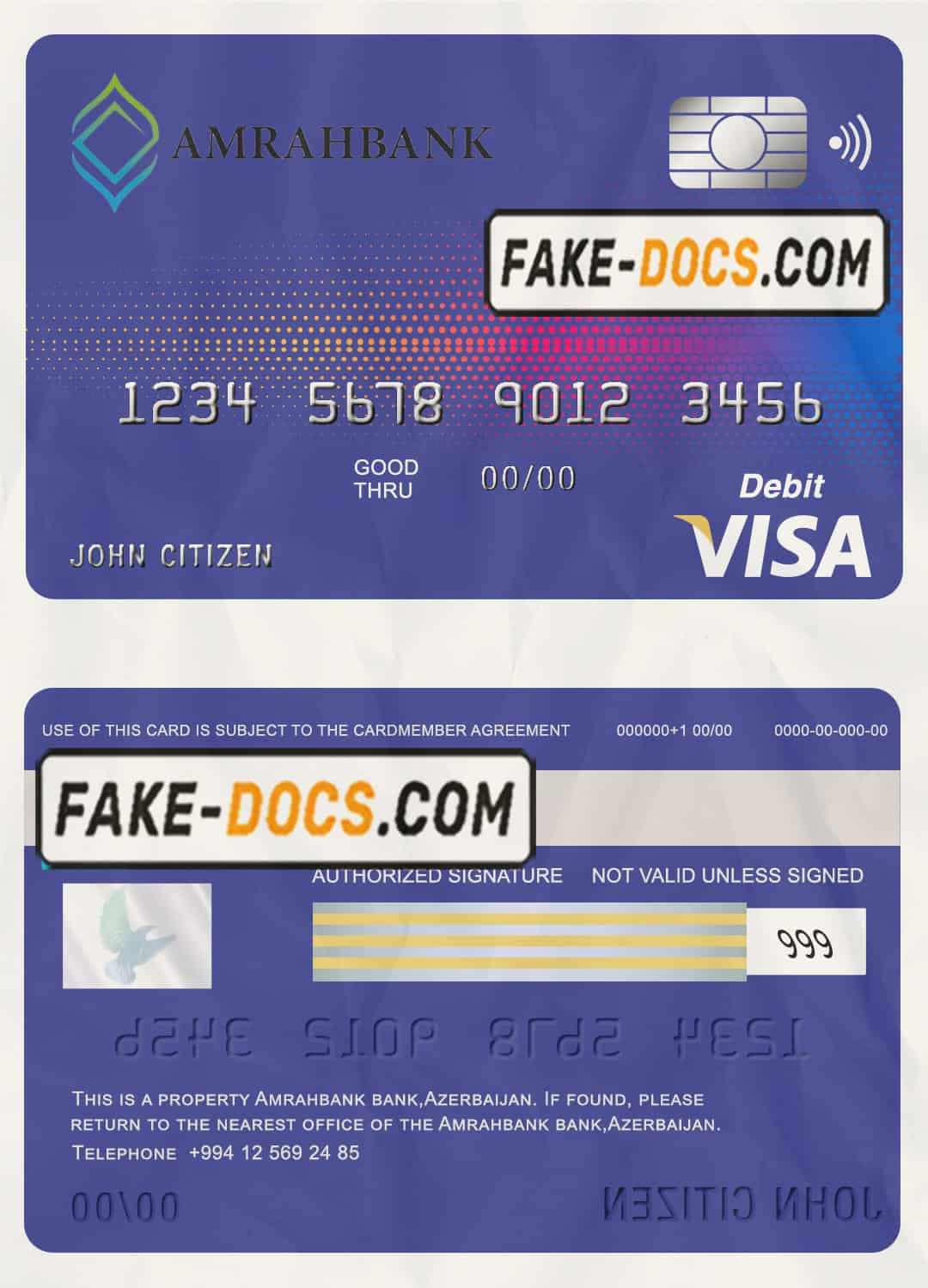 Azerbaijan Amrahbank bank visa card debit card template in PSD format, fully editable