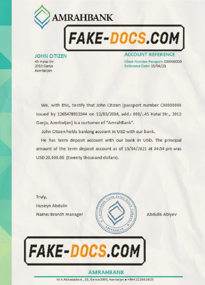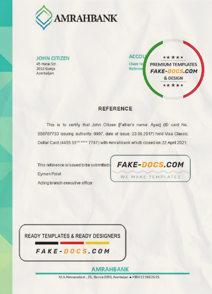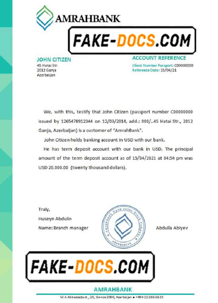 Azerbaijan Amrahbank bank account statement template in Word and PDF format
