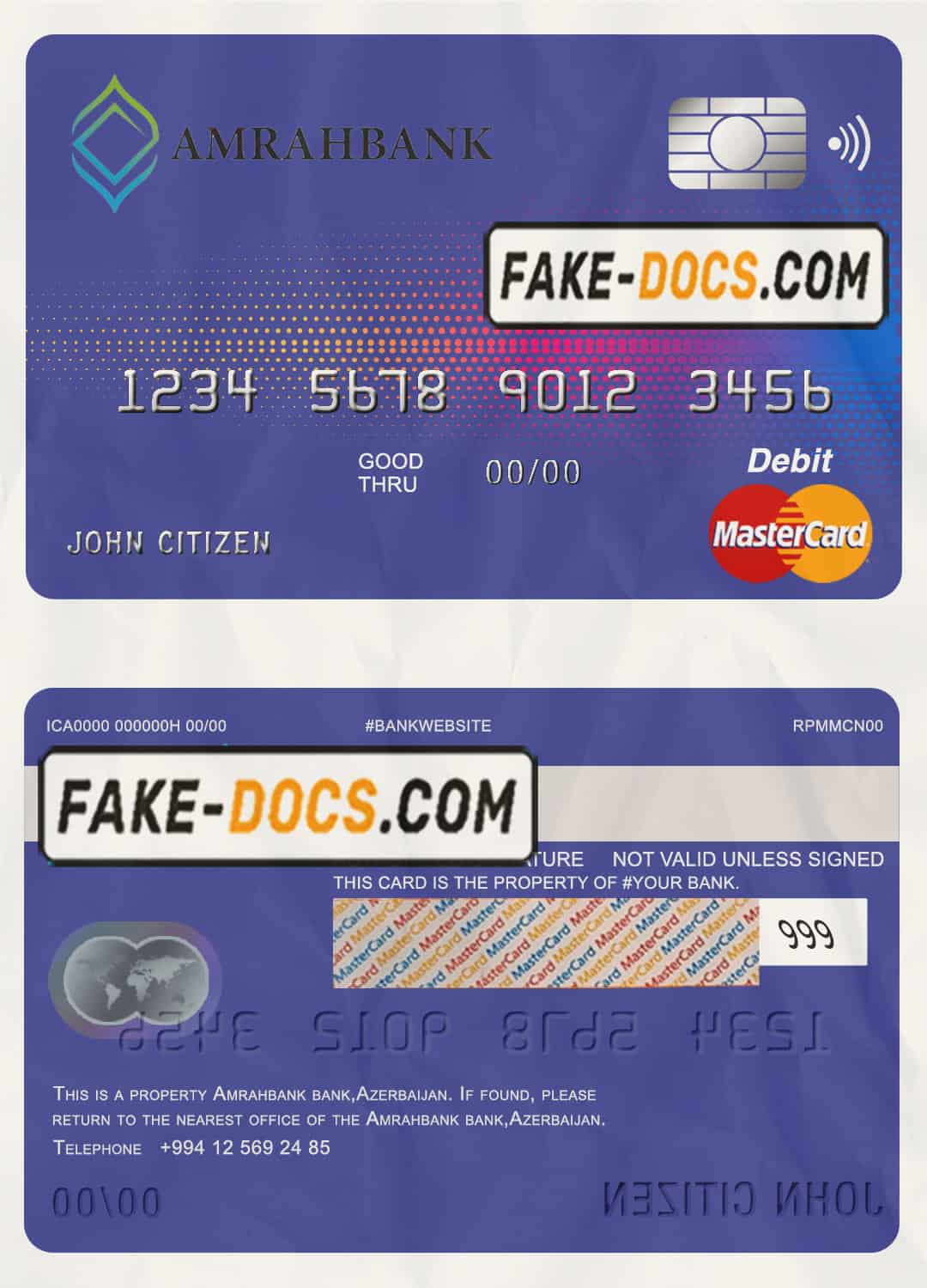 Azerbaijan Amrahbank bank mastercard debit card template in PSD format, fully editable