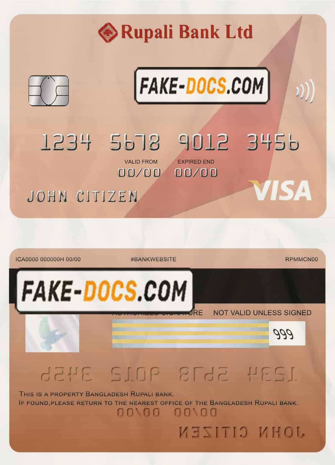 Bangladesh Rupali bank visa card template in PSD format, fully editable