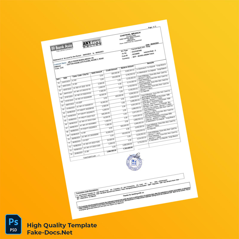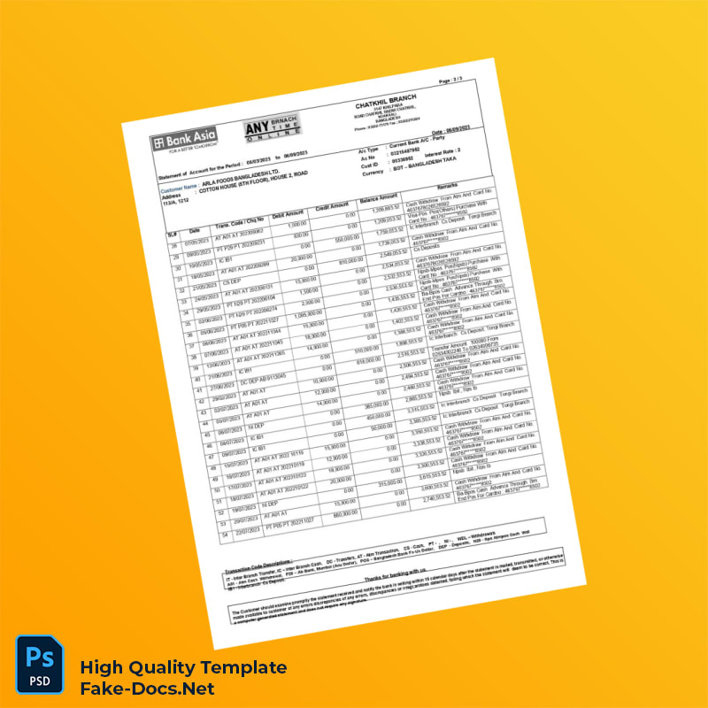 Bangladesh Bank Asia Account Statement Template in Word and PDF formats 3 page