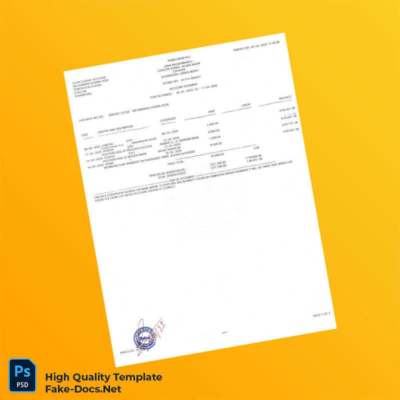 Bangladesh Bank Statement Template in Word and PDF formats 2 page
