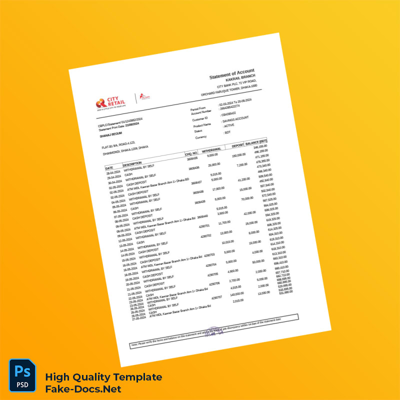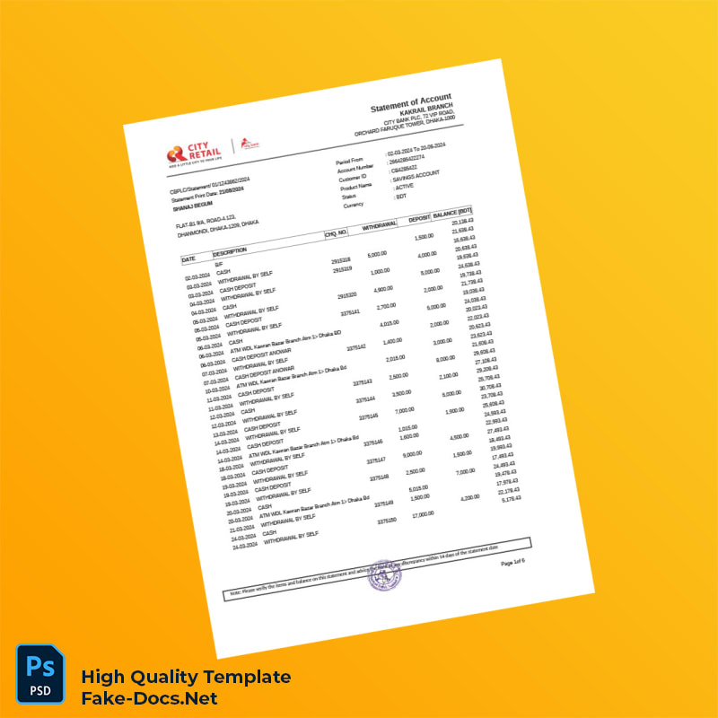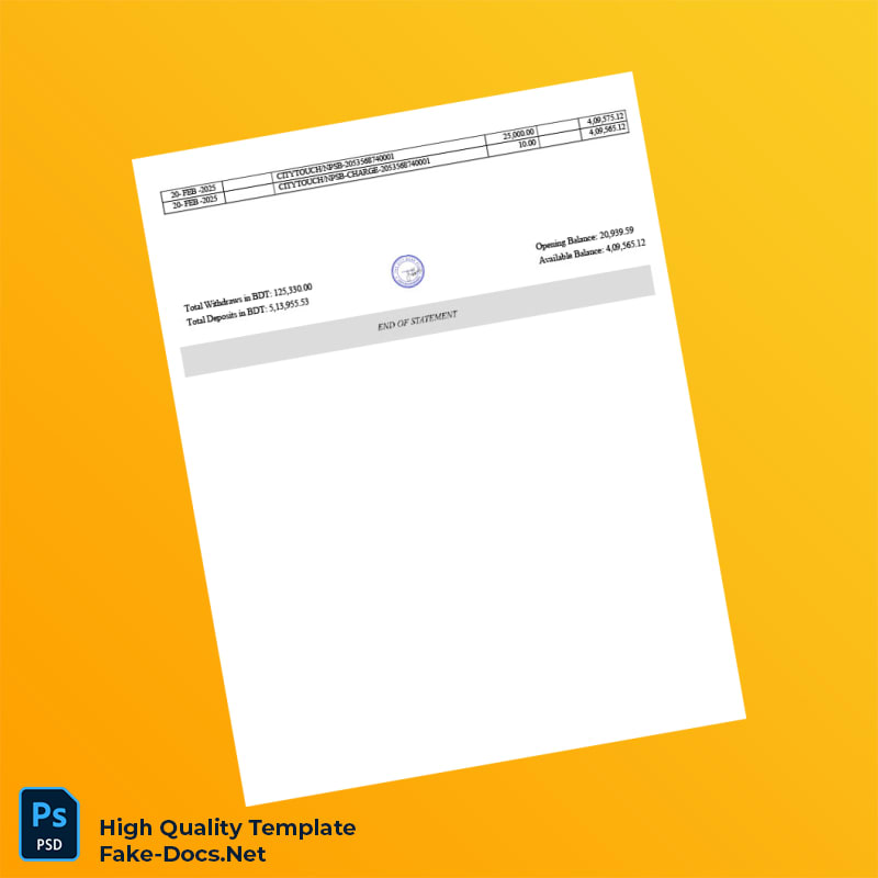 Bangladesh City Bank Statement Template in Word and PDF formats 7 page