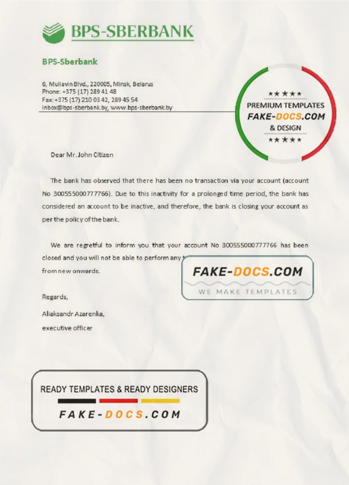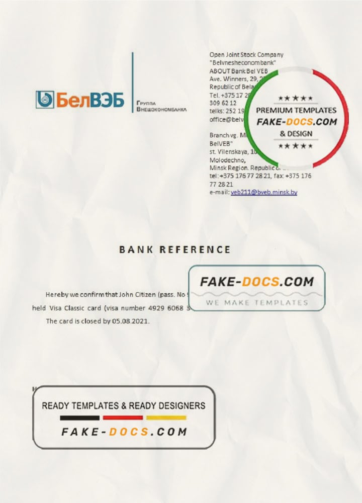 Belarus Belarusbank proof of address bank statement template in .doc and .pdf format