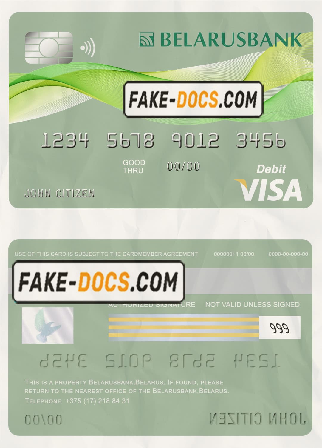 Belarus Belarusbank bank visa card debit card template in PSD format, fully editable