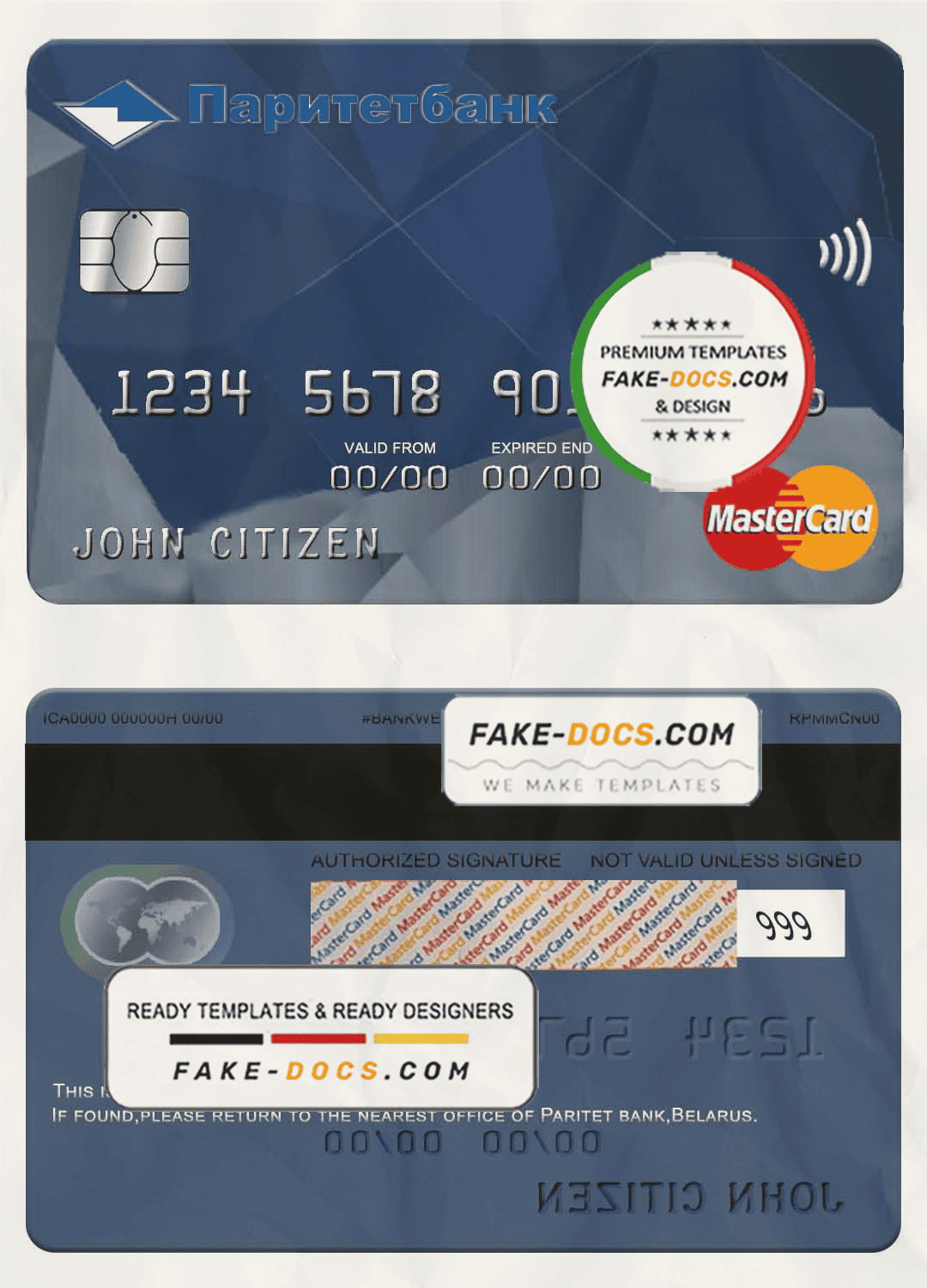 Belarus Paritet bank mastercard template in PSD format, fully editable
