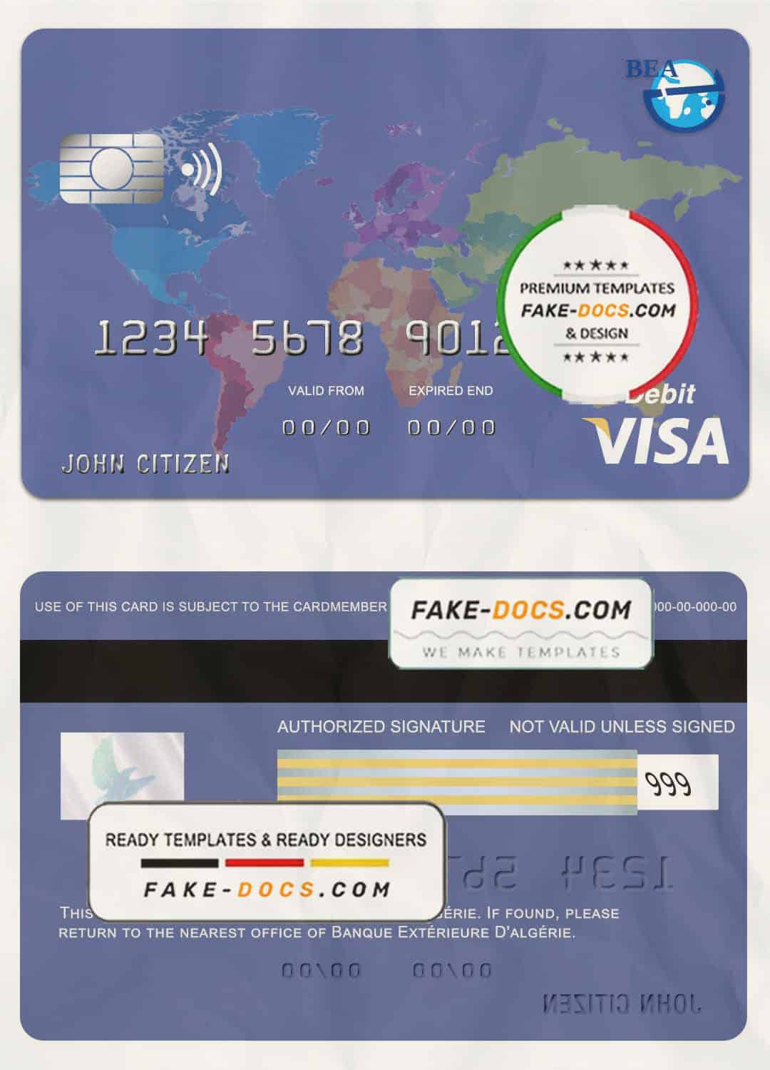Algeria banque extérieure visa card template in PSD format, fully editable